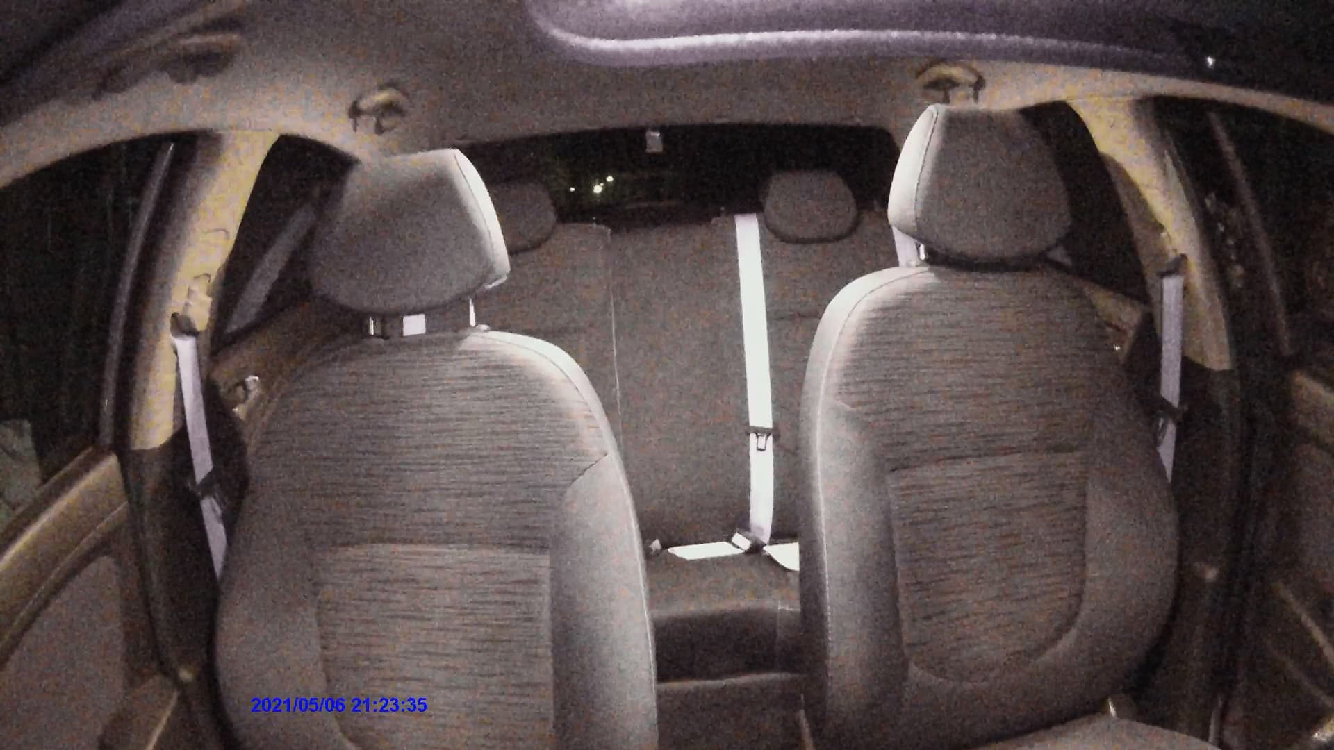 Заявленная двухметровая эффективность ИК-подсветки приведена производителем явно с осторожностью. Похоже, эти четыре мелких диода в состоянии осветить как минимум внутренности микроавтобуса. Взгляните, как светится ремень безопасности на заднем сиденье (средний стоп-кадр). А ведь ремень находится в полутора метрах от камеры.