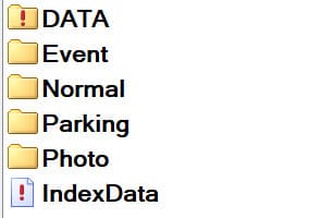 Во время записи наш регистратор разбивает материал на отрезки заданной в настройках длительности. Материал с каждой камеры сохраняется в папки с именами F (Front) и R (Rear), которые находятся в папках Event (событие), Normal (обычная запись) и Parking (режим парковки). Также на карте памяти создается папка Photo, куда складываются фотоснимки, сделанные регистратором (и снова спросим: зачем регистратору нужен фоторежим?). Наконец, на карте памяти присутствует и «лишняя» скрытая папка с именем DATA. В ней хранятся файлы, относящиеся к GPS-функциям, которых в регистраторе попросту нет.