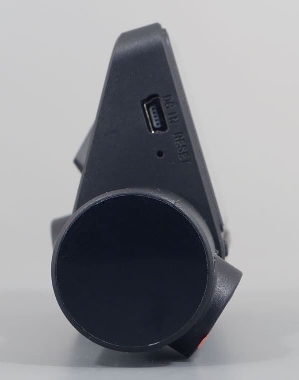 Интерфейсы камеры вмонтированы по бокам корпуса: порт Mini-USB с кнопкой сброса на одной стороне и слот для карты памяти на другой.