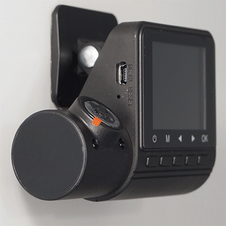 Основной объектив, направленный вперед по ходу движения автомобиля, не имеет регулировки наклона. Но этого и не требуется, ведь крепежная площадка имеет такой механизм. В отличие от основной камеры, второй объектив встроен во вращающуюся часть корпуса — выступающий слева цилиндрик. Диапазон наклона этой камеры составляет около 90 градусов. Такой большой диапазон позволит наклонить камеру в пол или вообще задрать в потолок.