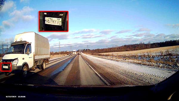 К сожалению, особенности сжатия одним из самых неэффективных кодеков (MJPG) не дают возможности реализовать весь потенциал сенсора, который и без того невелик. Эти особенности заключаются в классической шероховатости и пикселизации, которые являются визитной карточкой неаккуратного JPG, где не применяется межкадровое сжатие. Номер, находящийся достаточно близко, еще попадает в «сетку разрешения» MJPG, но стоит номеру отдалиться, как он превращается в спонтанную мешанину рваных пикселей, которую невозможно идентифицировать.