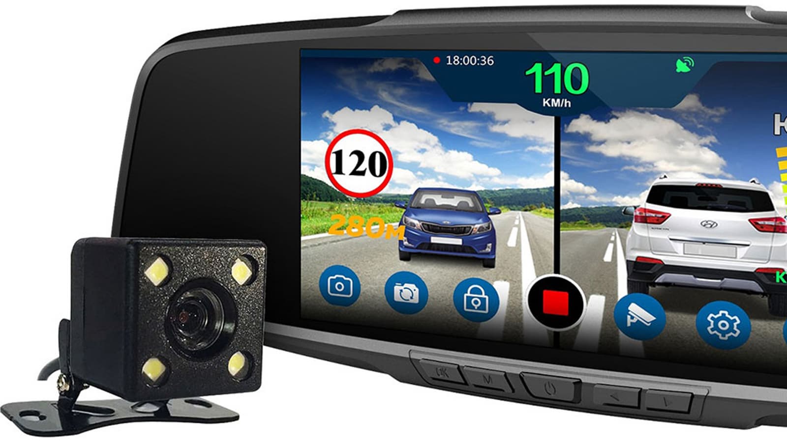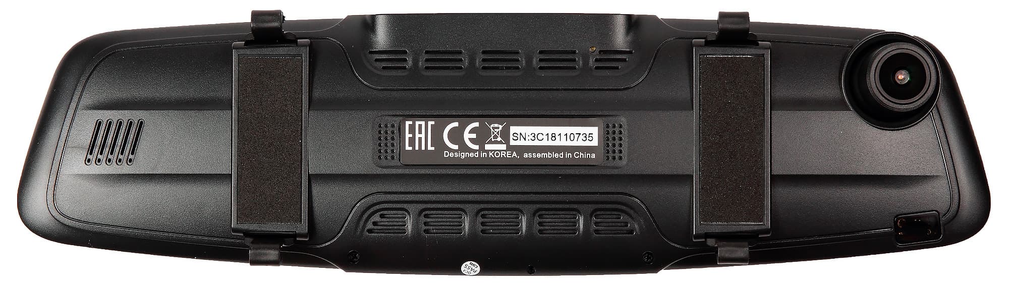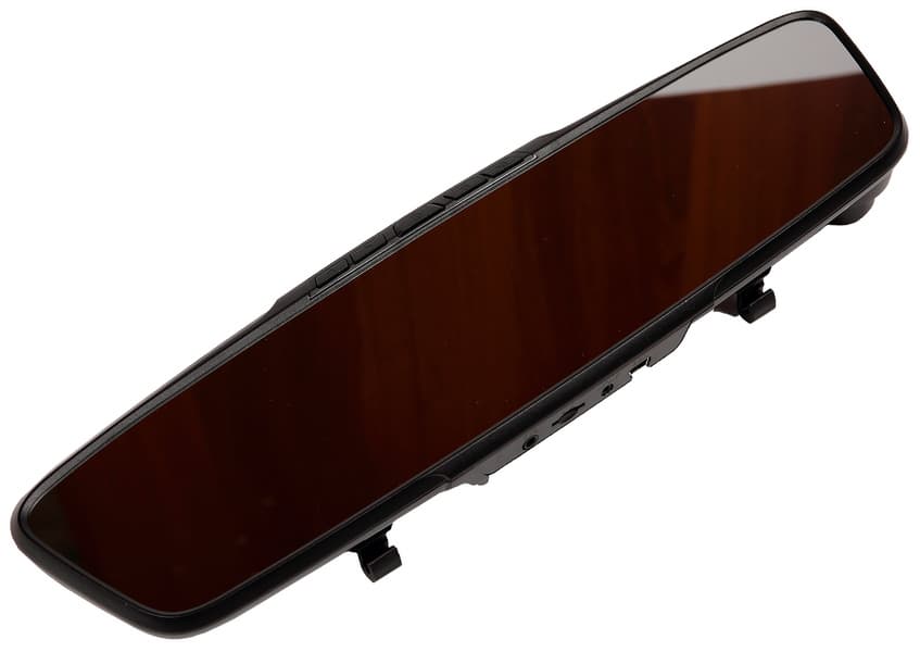 Устройство оснащено крупным 5″ цветным IPS-экраном с разрешением 854×480, который во включенном состоянии находится прямо посередине зеркала заднего вида, а в выключенном успешно маскируется — как будто это обычное зеркало и никакого экрана там нет.