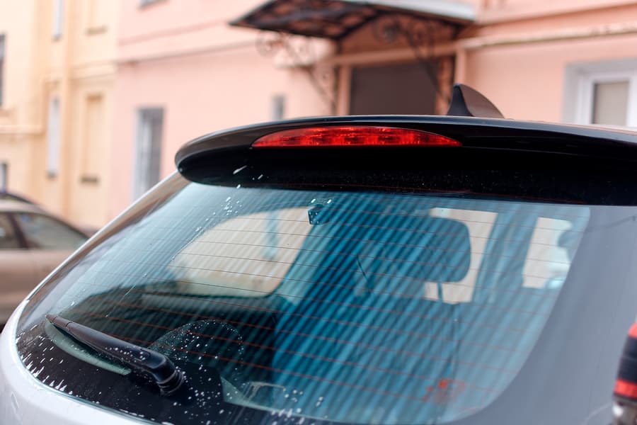 Вторую камеру мы установили в верхней части заднего стекла. Здесь следует упомянуть одну очень важную деталь: провод для подключения задней камеры снабжен красным проводком длиной около метра, который следует подключить к сигналу заднего хода. В этом случае при включении заднего хода на экране видеорегистратора автоматически отобразится изображение с тыловой камеры. Это действительно очень удобно.