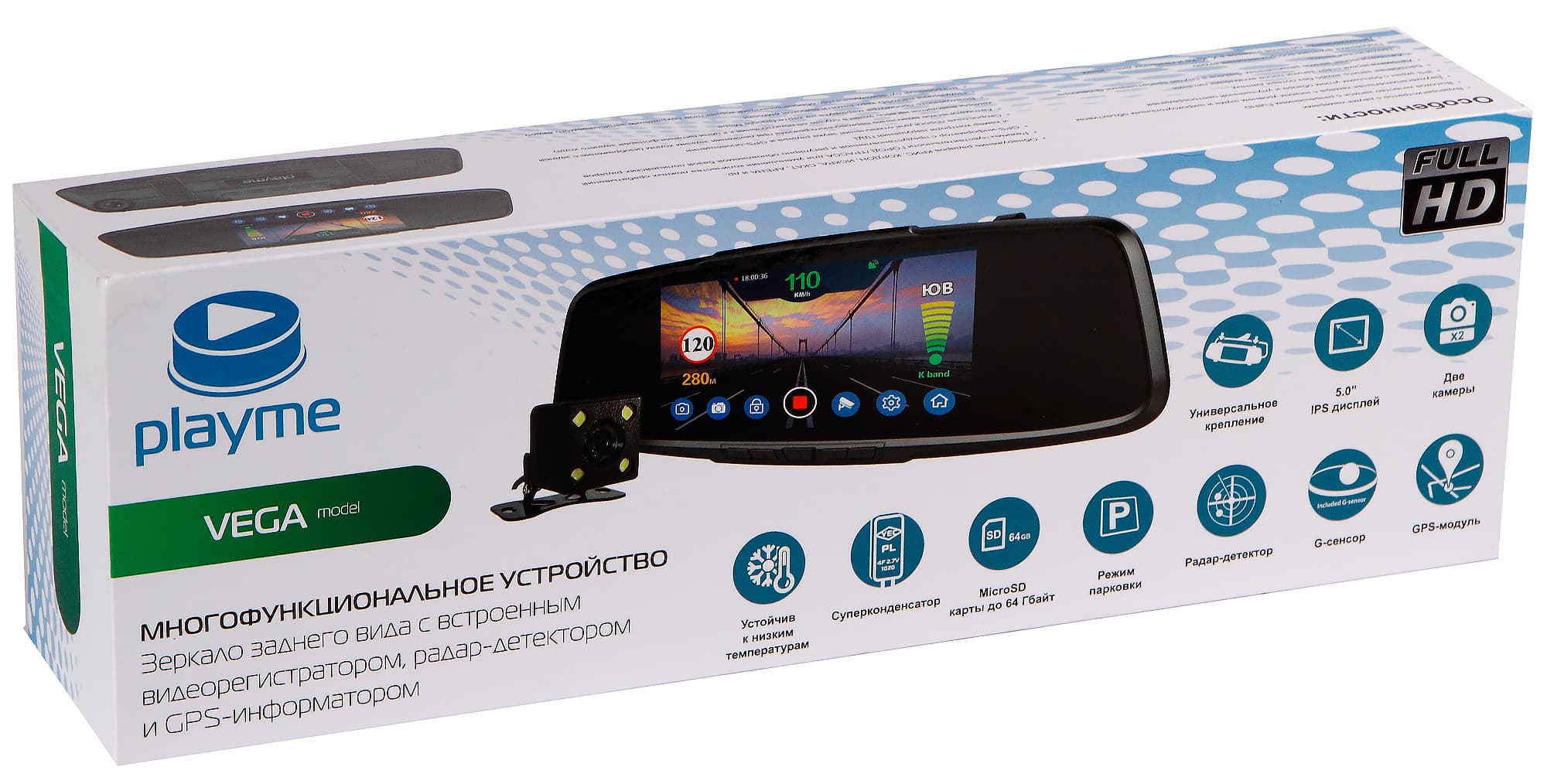 Продукцию Playme мы тестировали не раз, в том числе комбо-устройства «3-в-1», но такой прибор нам в руки не попадал за все время существования раздела OnRoad. Судите сами: это не просто «3-в-1», и даже не просто «3-в-1» в форм-факторе зеркала заднего вида — он еще и двухкамерный! Как говорится: фарша полнее просто не бывает. Однако всем известна эмпирически доказанная гипотеза: «чем больше устройств в одном корпусе — тем больше проблем». Посмотрим, с какими мы столкнемся на примере Playme Vega.