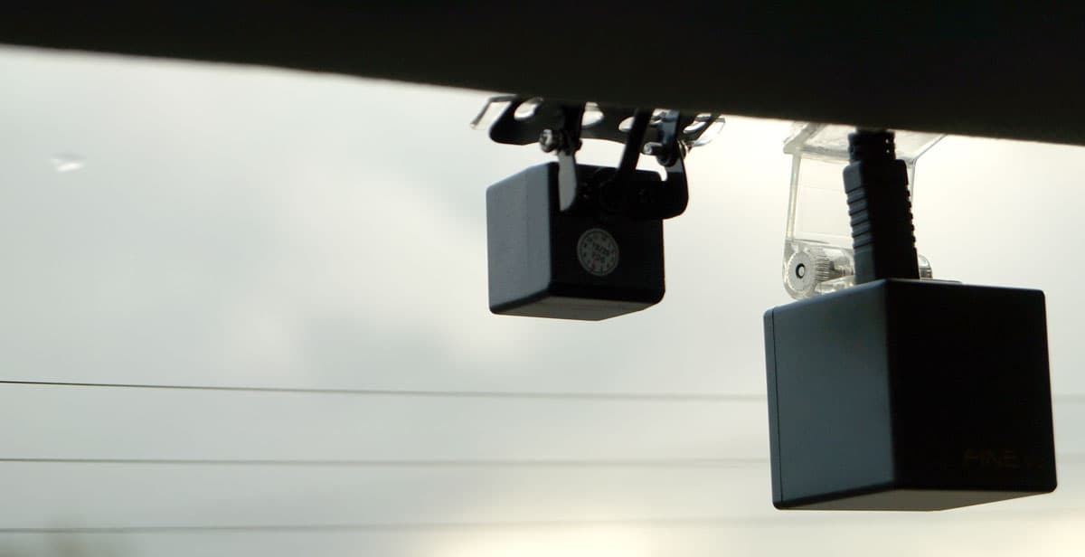 Вторая камера может крепиться на задний бампер, на крышку багажника, над задним стеклом снаружи или внутри салона. Мы выбрали вариант крепления камеры к заднему стеклу внутри салона, рядом с основной камерой, которая была установлена несколько лет назад. Вот она, справа, выглядит гигантом в сравнении с рассматриваемой малышкой.