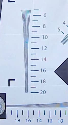 Когда «стационарные» сенсор и кодек занимаются несвойственным им делом (записью большого количества движения), получается вполне ожидаемый результат: картинка, отличающаяся низким качеством сжатия, а вследствие этого невысокой детализацией. В то время как статичный кадр дает значительно более высокую детализацию. Так, съемка тестовой таблицы показывает очень неплохую разрешающую способность основной камеры нашего устройства: до 900 ТВ-линий по горизонтальной стороне Full HD кадра. Между прочим, этот результат характерен для Full HD видеокамер среднего ценового диапазона!