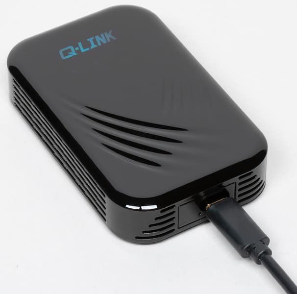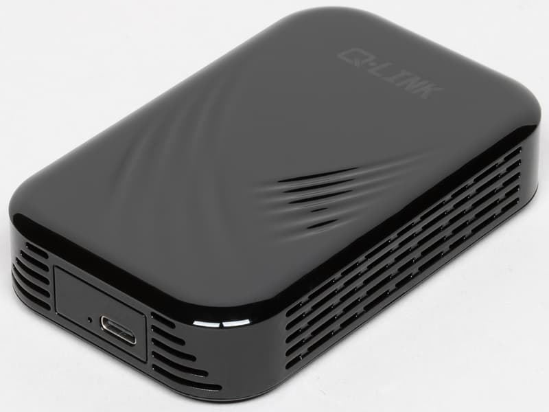 Благодаря наличию USB-порта, Q-Link может работать с разными типами накопителей. Мы подсоединяли даже флэшку объемом 256 ГБ с файловой системой exFAT — всё в порядке, файлы читаются. Таким образом, устройство в состоянии работать с внешними «походными» USB-дисками любого объема.