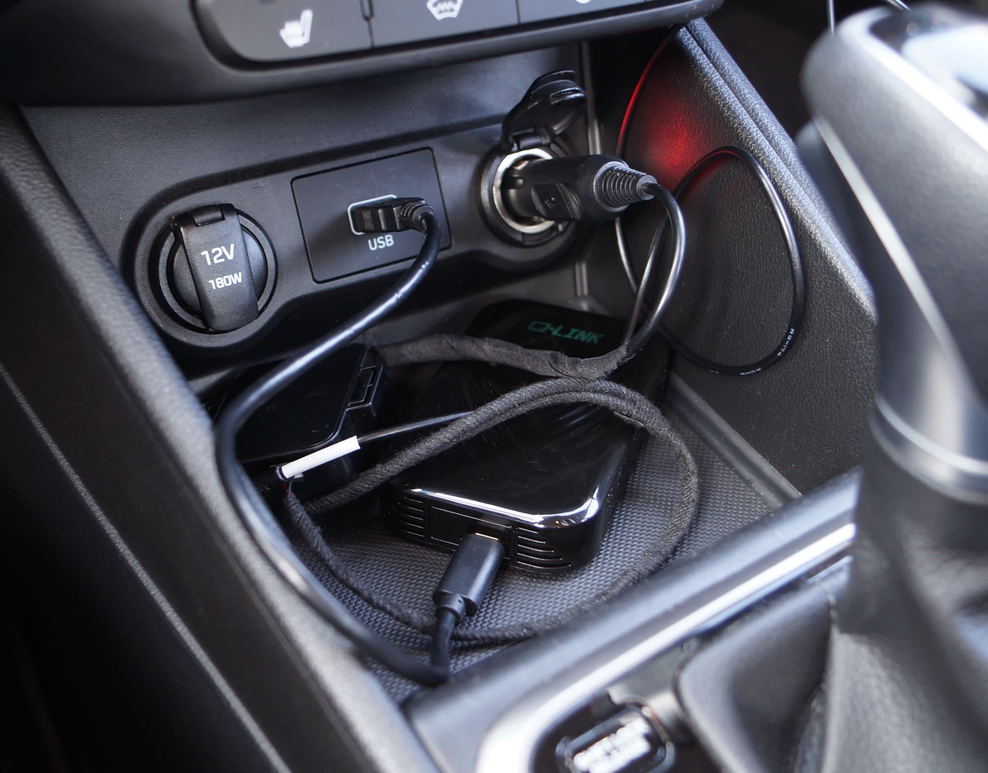 В ней штатный кабель питания с клеммами заменен на обычный адаптер прикуривателя, чтобы запитать устройство по-быстрому, не тревожа блок предохранителей. Такой блок спрятан где-то в районе рулевой колонки, это знает каждый (нет).