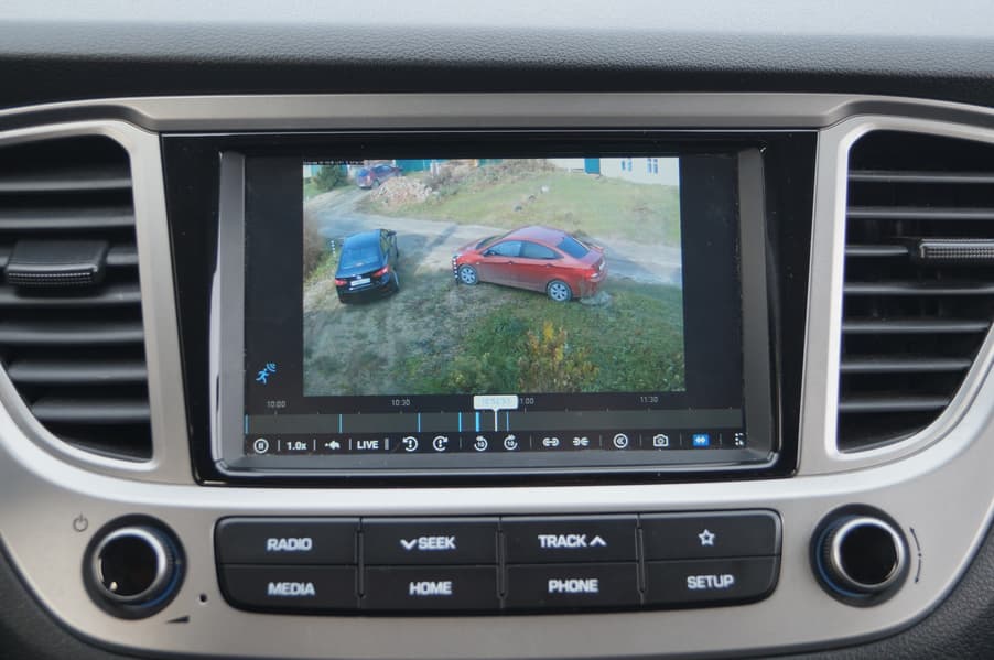 Пользуясь этими преимуществами, мы установили в Q-Link систему домашнего наблюдения. Очень удобно контролировать доступность машиноместа, когда подъезжаешь к городскому жилищу. А кстати, вот она, наша машинка, в кадре. Черненькая.
