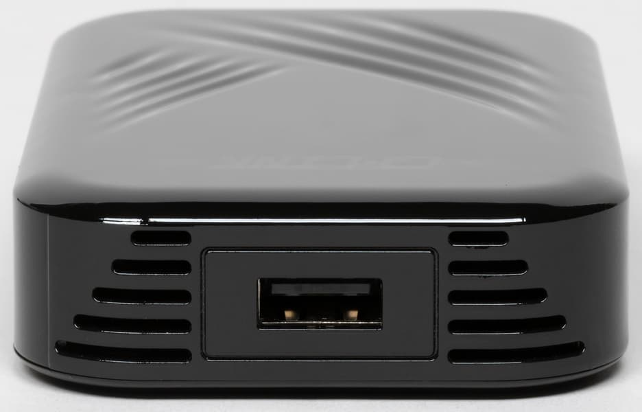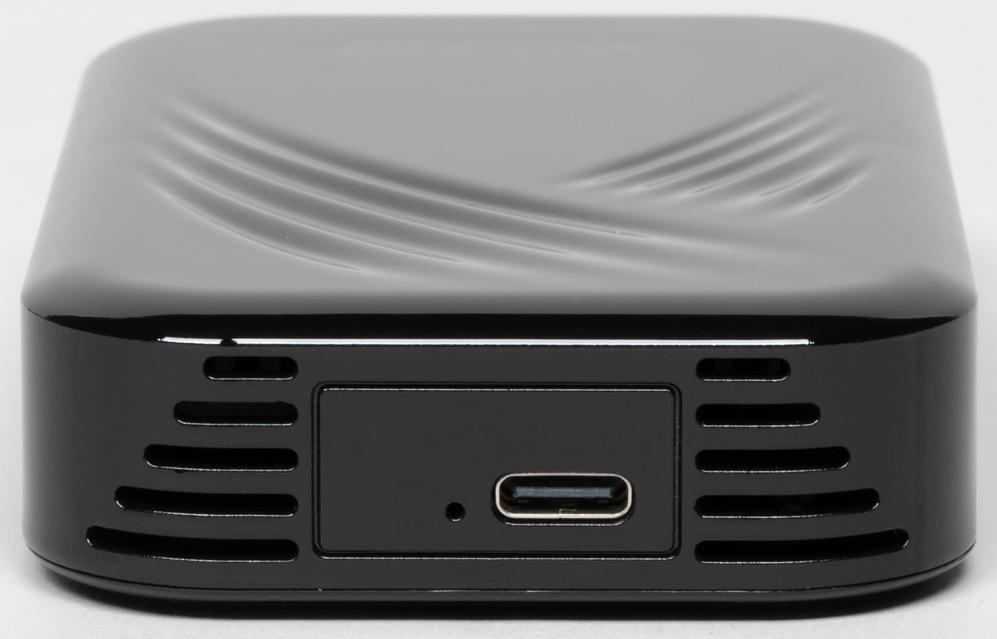 На противоположных торцах устройства расположены служебные интерфейсы приставки: порт USB Type-C для связи с CarPlay и «обычный» USB для подключения внешних устройств: флэшки, картоводы и т. д.