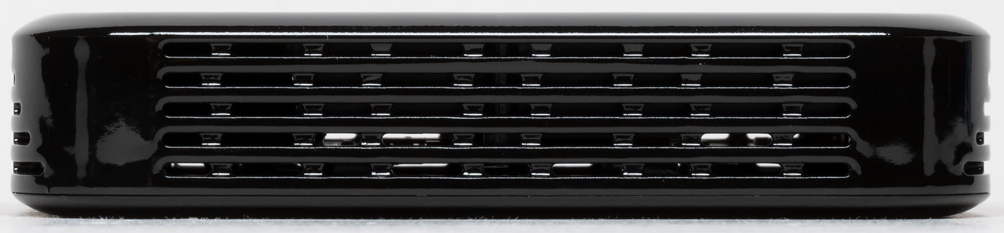 Согласно кратким техническим характеристикам на наклейке, прибор потребляет 5 В 1 А — это стандартный ток USB, указывающий на довольно низкое энергопотребление. Тем удивительней тот факт, что корпус буквально испещрен вентиляционными щелями и отверстиями, которые помогают отводить излишки тепла от нагретых электронных компонентов.