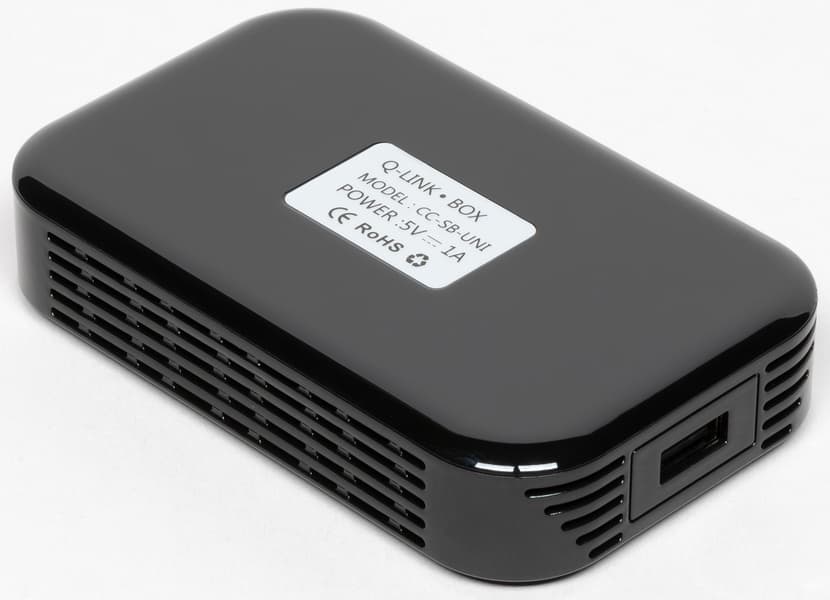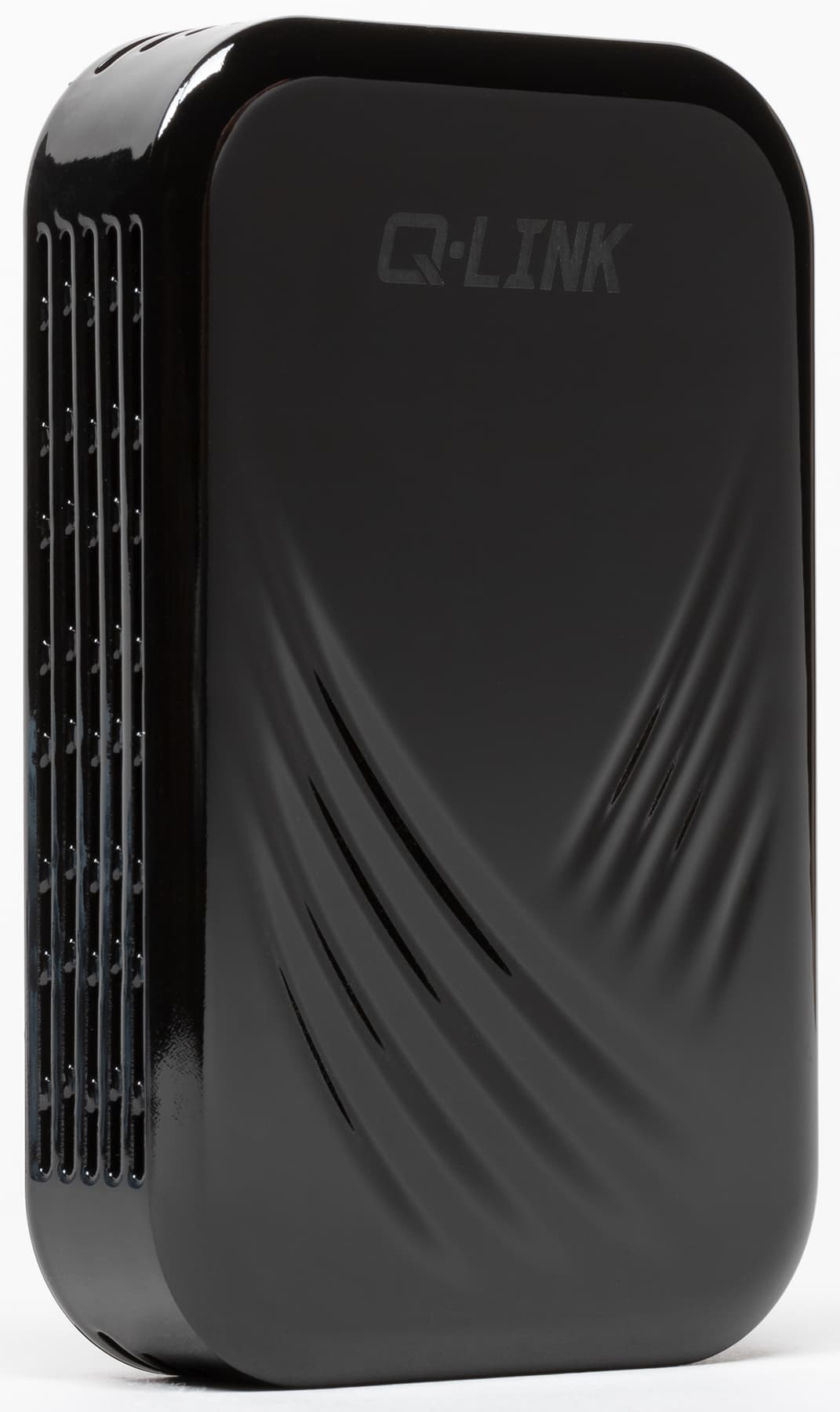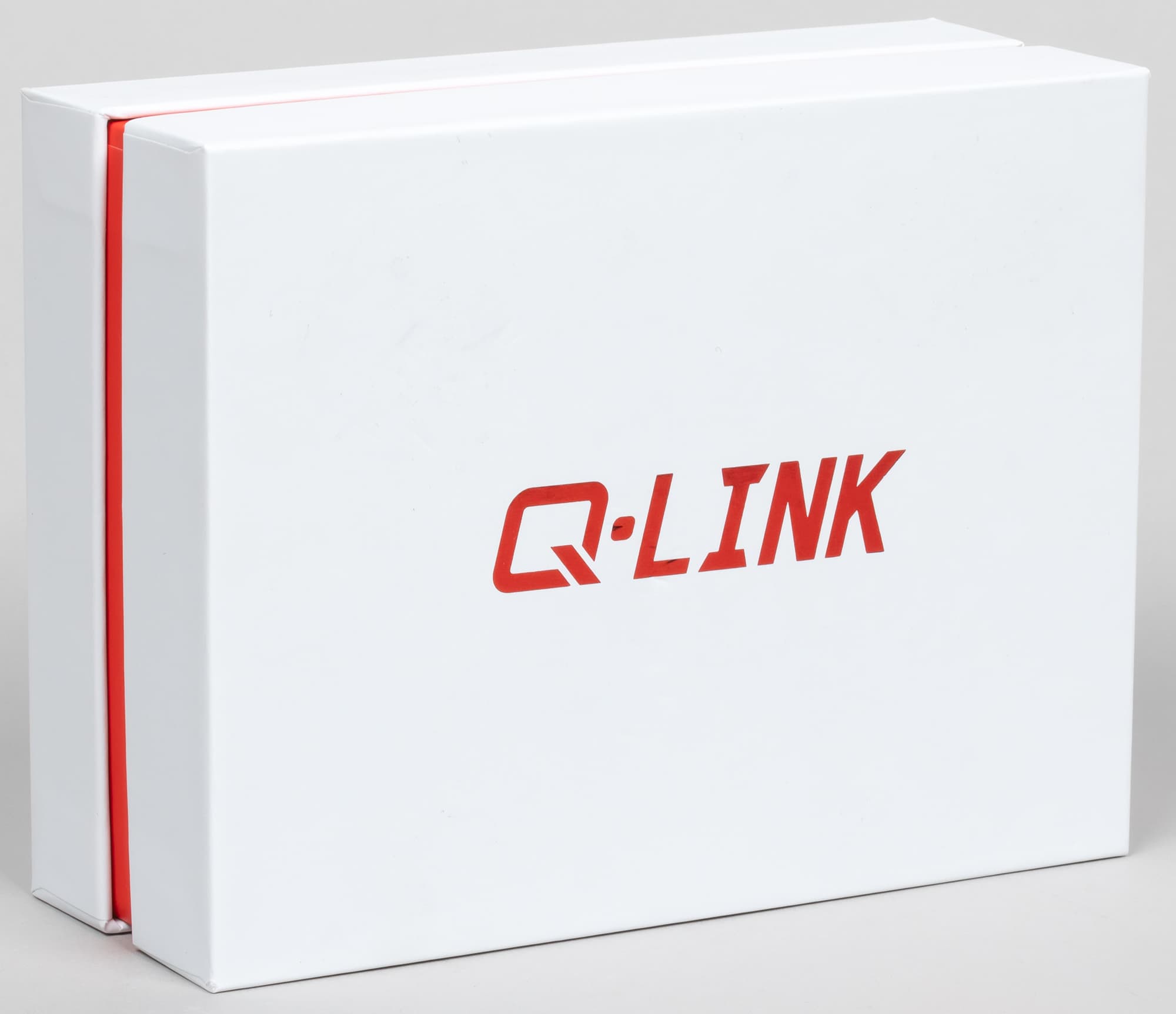 Миниатюрный глянцевый кирпичик, неброского, но привлекательного дизайна. Название прибора — Q-Link — можно видеть на крышке, эта надпись играет роль светодиодного индикатора, который отражает текущее состояние устройства.