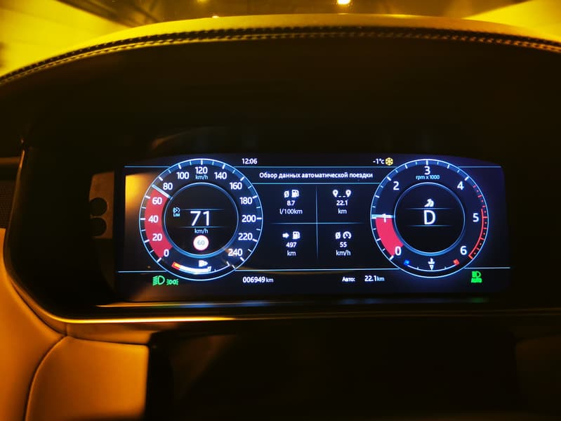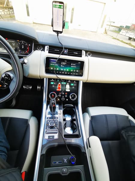 Интеграция всех дисплеев вокруг водителя снова, как и в случае с Jaguar, не оставила места для разъема прикуривателя или USB-порта. Опять ближайший разъем прикуривателя или USB-разъем с функцией подзарядки находится в подлокотнике, что предъявляет особые требования к длине USB-провода. Конечно, можно пользоваться бортовой навигацией или выводить информацию на большой монитор через Android Auto или Apple Car Play, но существуют ряд приложений, которые не оптимизированы для данных систем, и использование смартфона в этом случае более оправдано или попросту безальтернативно.