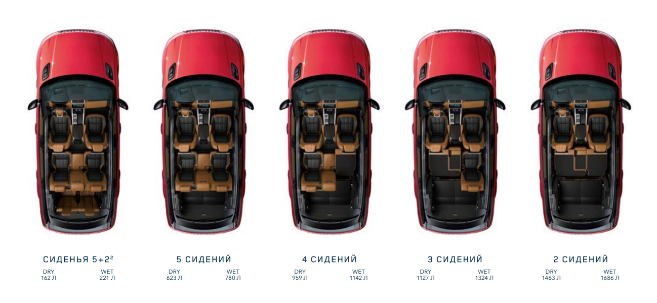 В спортивной модели впервые в качестве опции появился третий ряд сидений, которого нет даже в большом «Рейндже». Галерка находится в багажнике и поднимается нажатием кнопки.