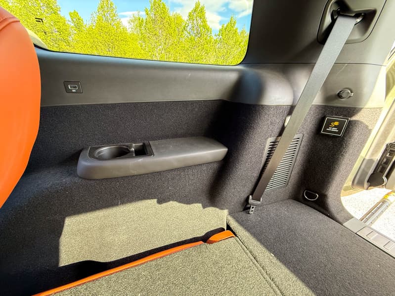 Водитель и передний пассажир могут заряжать телефон на беспроводной зарядке. Но почему-то машина посчитала, что iPhone 16 Pro Max не достоин этого, и вообще называла его металлическим предметом и просила убрать. А вот Samsung Galaxy S20 у пассажира заряжался без проблем. Еще из удобств в салоне — панорамная крыша с двумя окнами. И это именно она, ни один из них не сможет стать люком, как бы ни старался.