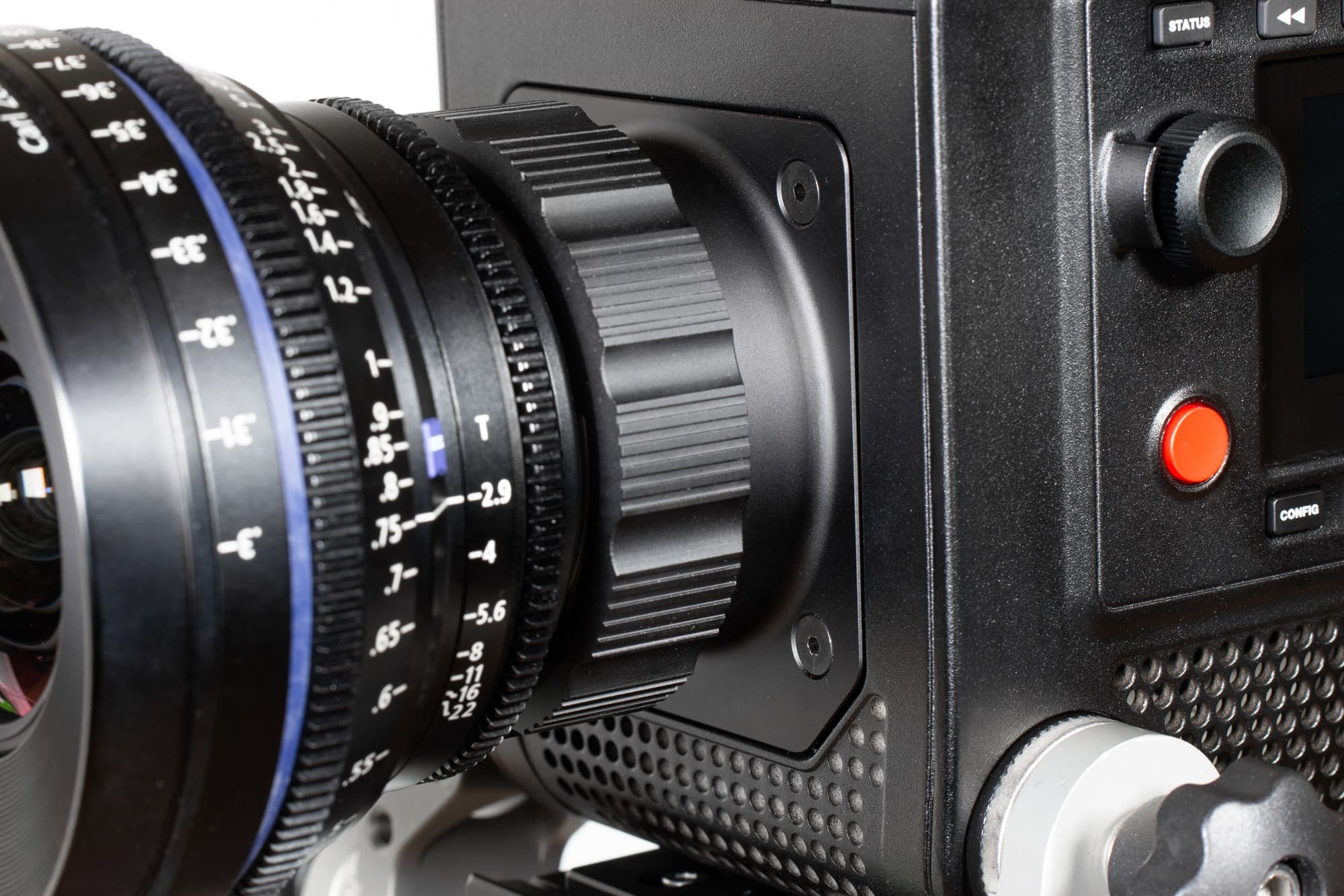 Это магниевый сплав. Поэтому вес камеры всего 2,9 кг, при этом прочность корпуса очень высокая. Камера универсальная, она готова для работы и в кино, и в телевещании. Есть поддержка HD, прогрессивного и чересстрочного, есть поддержка 2K, UHD, 4K. Когда камера работает в режиме HD или 2K, мы используем весь сенсор, с даунскейлом, не кропим только середину кадра. Здесь электронный затвор (global shutter). Камера идет с байонетом PL, который является основным стандартом для кинообъективов. Можно использовать адаптеры MTF Services для камеры CION, для объективов Nikon G, Canon EF, Canon F, B4, Leica M.