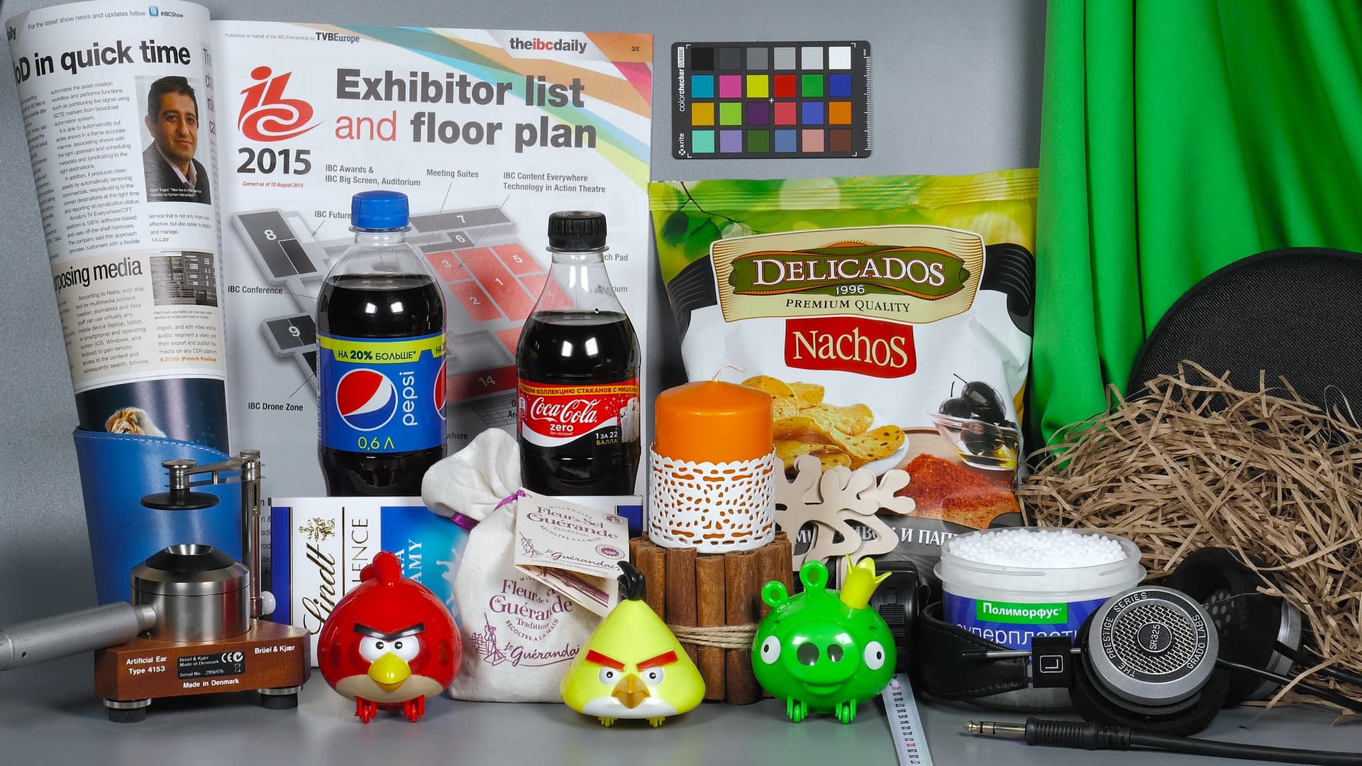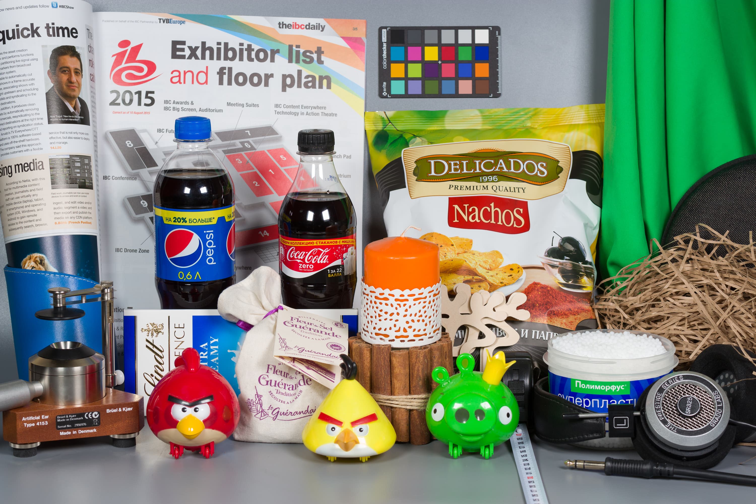 Для статьи мы построили специальную тестовую сцену с динамическим диапазоном более 12 стопов, с разнообразными насыщенными цветами, сложными текстурами и не очень большой глубиной.