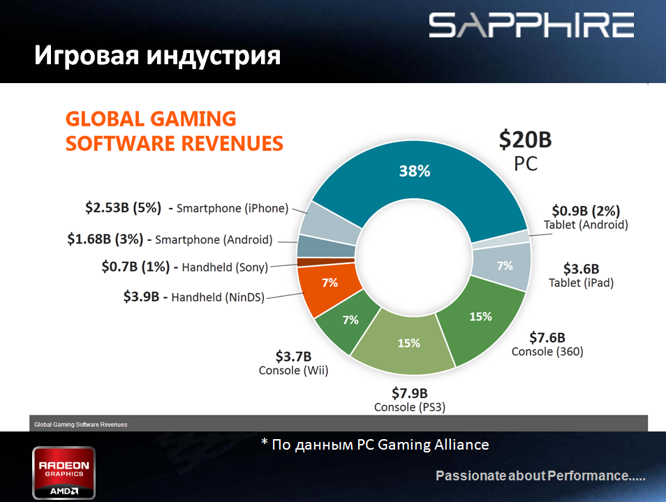 В 2012 году игровая индустрия заработала 67 млрд. долл., а прогноз на 2017 год составляет 87 млрд. долл. Учитывая столь значительную составляющую игр для ПК, вряд ли кто захочет добровольно выйти из сегмента бизнеса, обеспечивающего аппаратную составляющую игровой конфигурации.