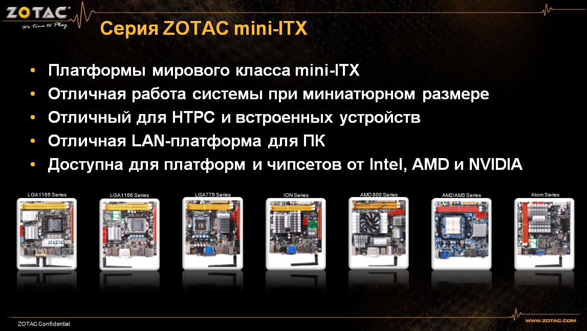 Другой партнер NVIDIA, компания Zotac, помимо видеокарт сделала ставку на готовые мини-ПК ZBox и системные платы Mini-iTX.