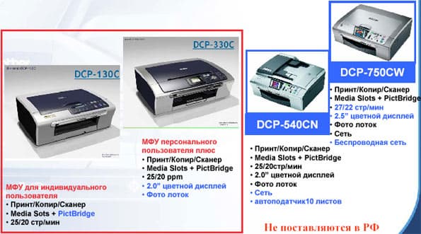 В модельном ряду устройств DCP для поставок в Россию сотрудниками местного представительства были выбраны две модели — Brother DCP-130С и DCP-330C. Они наделены наиболее востребованными функциями.