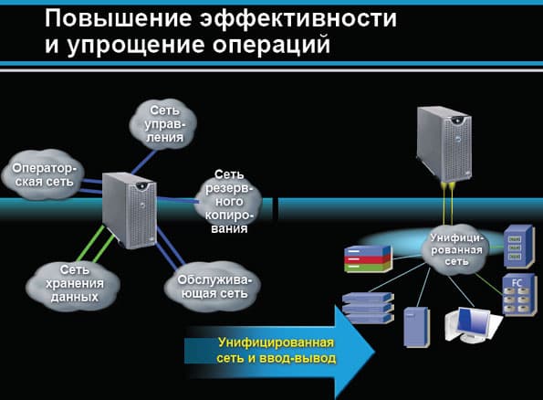 Кроме того, унифицированная архитектура позволяет использовать более плотные и компактные серверы и повышать рабочую нагрузку ЦОД. В сочетании с функциями виртуализации эта технология поможет строить более эффективные ЦОД, увеличивать их жизненный цикл, максимально загружать установленные ресурсы и экономить энергию.