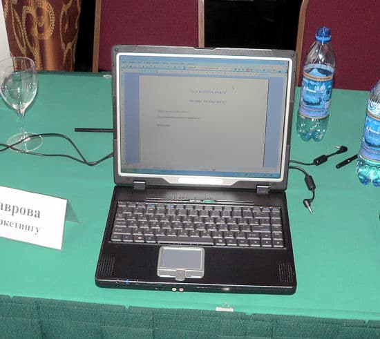 Наконец, завершилось выступление сравнением CyberBook с обычными и индустриальными ноутбуками. Сравнение интересное. И хотя у многих производителей сейчас появились близкие по классу ноутбуки из класса корпоративных моделей (вспомнить хотя бы Toshiba Tecra A8), CyberBook выгодно отличается от них ценой (хотя полностью функциональность, разумеется, можно будет оценить только на тестах).