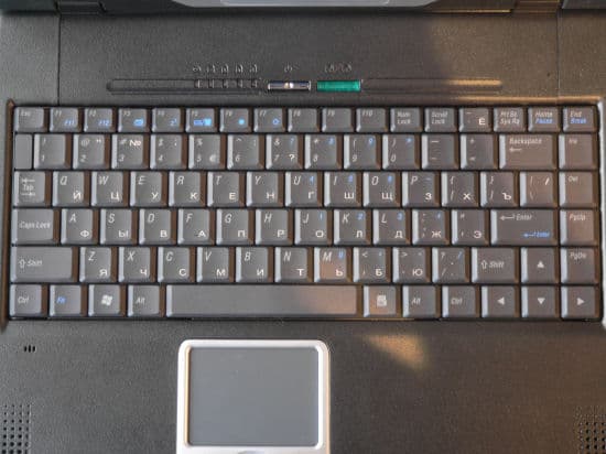По жидкостям стоит отметить то, что ноутбук защищен от их попадания на клавиатуру и тачпад, то есть если вы прольете на него жидкость, то достаточно ее просто стряхнуть. Кстати, по утверждениям представителей компании Desten, клавиатура внутри «резиновая», поэтому даже попадание агрессивных жидкостей (типа Фанты или апельсинового сока) не должно привести к выходу ее из строя, только клавиатуру в этом случае надо промыть и просушить. Низкий класс защиты объясняется тем, что у ноутбука открыты коммуникационные порты, соответственно, возможно проникновение влаги через них.
