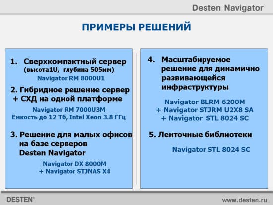 На этом слово было передано Алексею Волкову, который кратко представил новые предложения Desten для серверного рынка. Поскольку речь идет о бизнес-решениях, я ограничусь показом слайдов с краткими комментариями.