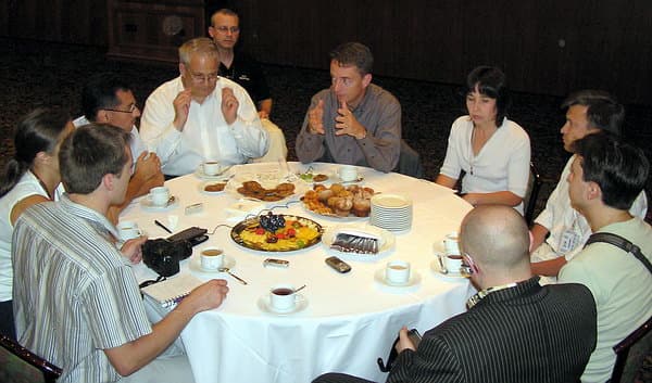 Он, в частности, встретился с сотрудниками центра разработок Intel в Москве, создающими один из будущих микропроцессоров корпорации, а также любезно согласился ответить на некоторые злободневные вопросы журналистов, как обычно, продемонстрировав глубину и широту знаний, острый ум и отменное чувство юмора.