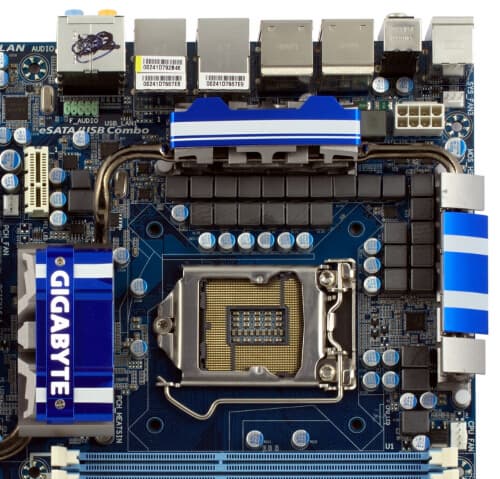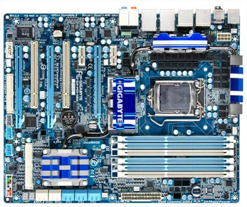 GA-P55-UD6С — топовое решение форм-фактора ATX для оверклокеров и геймеров. Материнская плата на чипсете Intel P55 с поддержкой процессоров Intel Core i7 и Core i5 и шести модулей памяти DDR3 (частота до 2200+), работающих в двухканальном режиме. Графические интерфейсы представлены двумя слотами PCIE 2.0 x16 (при использовании одного слота: 16 линий, если задействованы два слота: по 8 линий) и третьим слотом PCIE x16 (4 линии). Поддерживается технология Smart Dual LAN, представлена технология 24-фазного питания процессора, а также имеется два комбинированных разъема eSATA/USB.