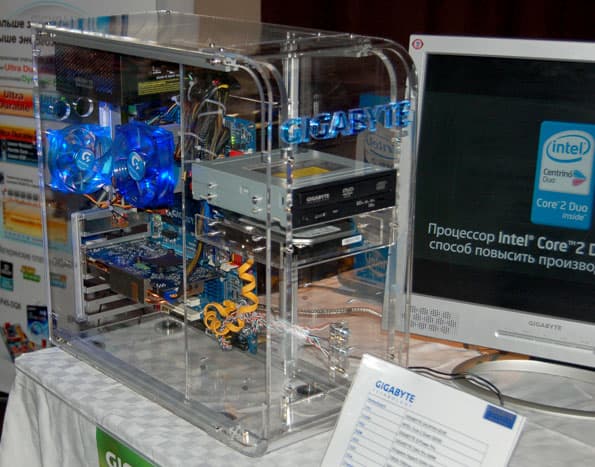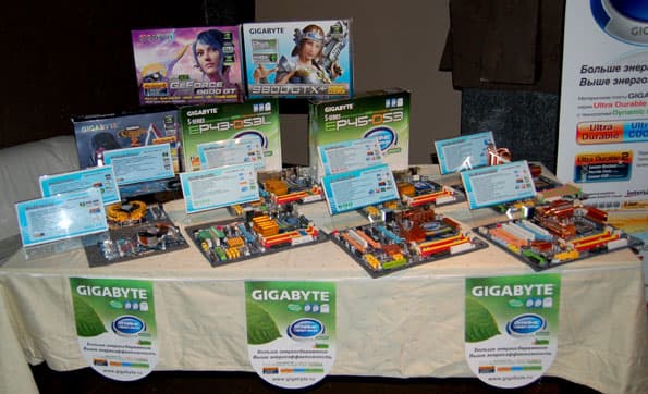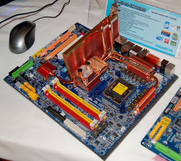 Компания показала UD3 в действии: стенд собран на основе платы GA-EP45-UD3P и процессора Intel Core 2 Quad Q8300