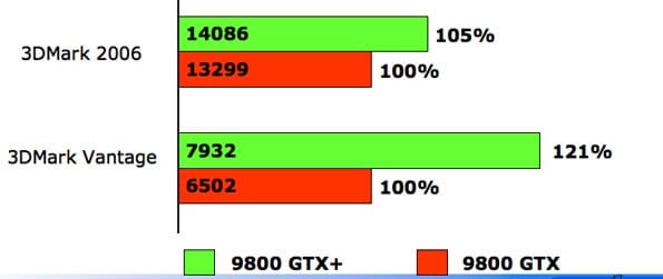 Итак, плата GV-N98XP-512H-B с оригинальным дизайном на базе ядра NVIDIA 9800 GTX+. Решение обладает высокой производительностью, благодаря повышенной до 754 МГц частоте ядра и поддержке PhysX. Также повышены и другие частоты: шейдерного блока — до 1836 МГц, а памяти — до 2,2 ГГц. Компания привела результаты сравнительных тестов: