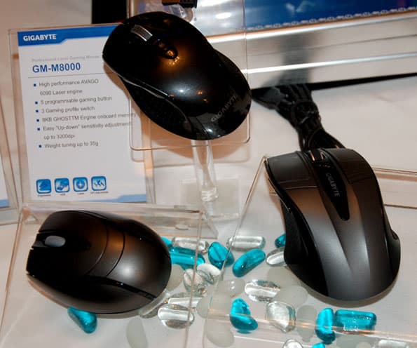 Среди манипуляторов флагманом стала GM-M8000: лазерная модель, предназначенная для геймеров. Разрешение сенсора в ней изменяется с помощью колеса прокрутки (от 800 до 4000 DPI). Мышка оборудована тремя программируемыми клавишами, а также имеет систему грузиков, позволяющих добавить 35 граммов веса.