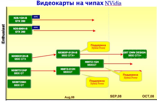 Планы компании по выпуску графических ускорителей на базе GPU NVIDIA выглядят следующим образом: