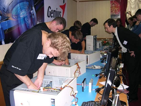 В финал вышли 15 человек, почти все из которых профессионально занимаются сборкой компьютеров. Они были разбиты на пятерки и… финальный чемпионат начался!