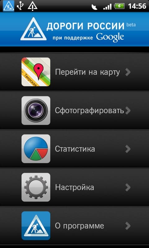 Со своего Android-смартфона пользователь может посмотреть статистику использования приложения на своем аппарате, саму карту с качеством дорожного покрытия, а также установить настройки типа передачи данных (через мобильный интернет или Wi-Fi).