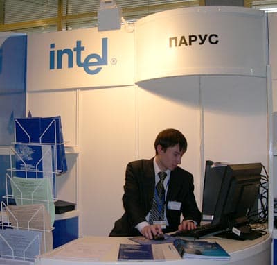 В фойе Центрального дома предпринимателя, где проходил Форум Intel, была развернута выставка комплексных решений для малого и среднего бизнеса.