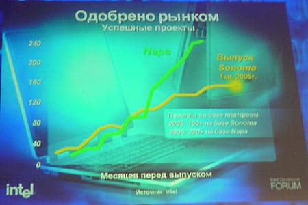 Распространятся ноутбуки на базе новой мобильной платформы Intel будут очень быстро, гораздо быстрее чем на базе Sonoma. К сегодняшнему дню уже готовятся к выпуску около 220 решений на основе Napa.