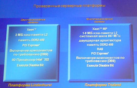 Из его доклада можно было узнать подробности о планах развития серверных платформ Intel, построенных на базе многоядерных процессоров и повышающих управляемость корпоративных систем, а также снижающих совокупную стоимость владения ими.