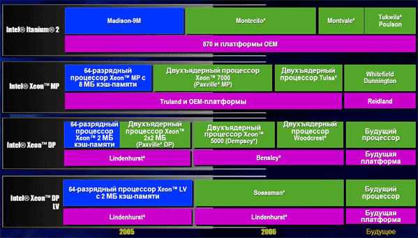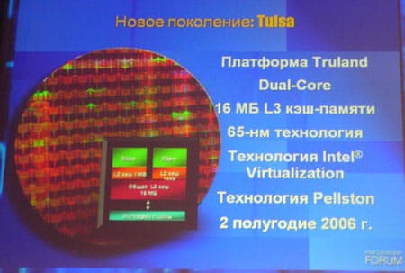Во втором полугодии 2006 года будет представлен новый процессор под кодовым названием Tulsa, изготовленный в соответствии с нормами 65-нм техпроцесса.