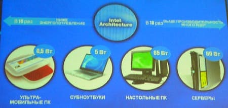 Генеральный менеджер подразделения Digital Enterprise Group также объявил, что грядущая продукция с низким энергопотреблением позволит создать новую категорию ультрамобильных ПК, которые будут обладать функциональными возможностями коммуникационных устройств и вычислительными возможностями ПК, при этом их потребляемая мощность будет менее одного ватта, а вес не превысит 450 граммов. Один из прототипов устройств новой категории был незамедлительно представлен: