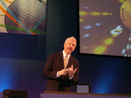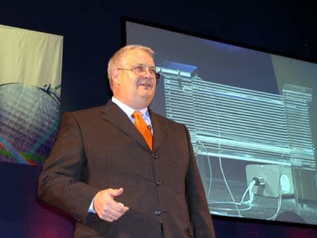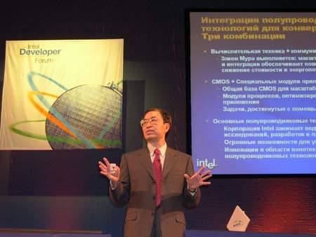 Второй день IDF 2003 в Москве начался с доклада Сунлинь Чжоу (Sunlin Chou) — старшего вице-президента и генерального менеджера подразделения Intel Technology Manufacturing Group.