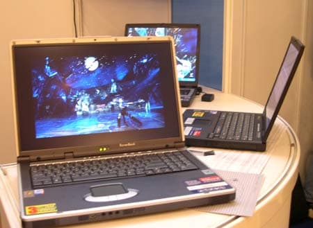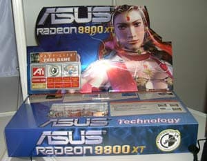 На совместном стенде ATI Technologies и ASUS можно было увидеть ноутбук ASUS L5C с видеоподсистемой Mobility Radeon 9000 DDR с 64 МБ и видеокарту Radeon 9800 XT.