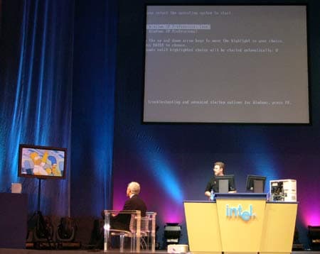 Еще одна технология виртуализации — Vanderpool — позволяет работать с партициями для программного обеспечения. Возможности Vanderpool были наглядно продемонстрированы участникам Форума, когда на компьютере с двумя установленными операционными системами были запущены мультфильм и процесс перезагрузки одновременно. Другими словами, перезагрузка одной системы никак не повлияла на работу другой — мультфильм «Симпсоны» продолжал транслироваться на экран.