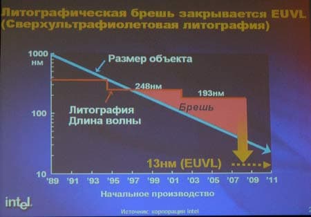 На смену современной литографии придет новая, революционная технология. По мнению Intel это будет ультрафиолетовая литография — EUVL.