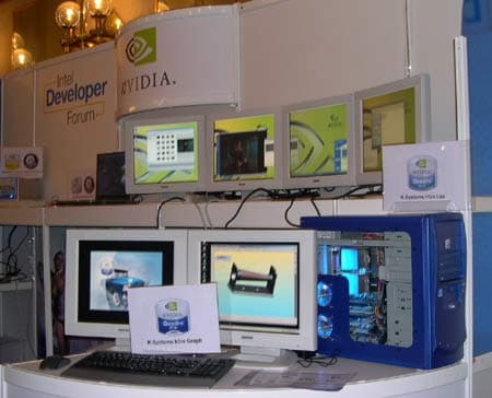 NVIDIA продемонстрировала профессиональные, игровые и мобильные системы на базе своих новейших графических решений: Quadro FX — для мощных графических рабочих станций, Quadro NVS — для мультимониторных решений, GeForce FX — для игровых платформ, GeForce FX Go — для мобильных платформ.