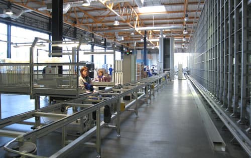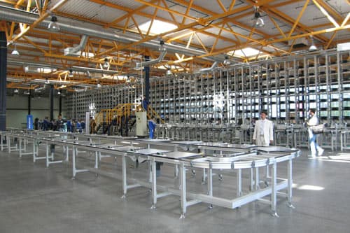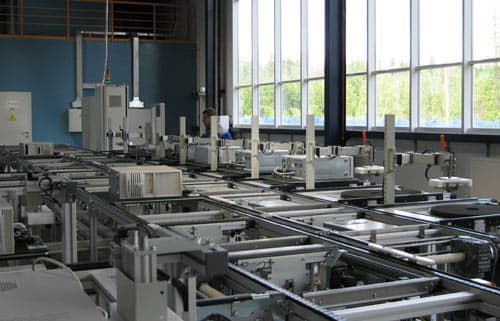 В целом, надо отметить, производственный процесс характеризуется высокой степенью автоматизации. Все движущиеся палеты оборудованы радиочастотными идентификационными метками для точного определения положения изделия на конвейере и, соответственно, состояния его готовности в любой момент времени. Управление процессом производства осуществляется с помощью АСУ ТП собственной разработки, которая фиксирует каждую операцию с изделием.