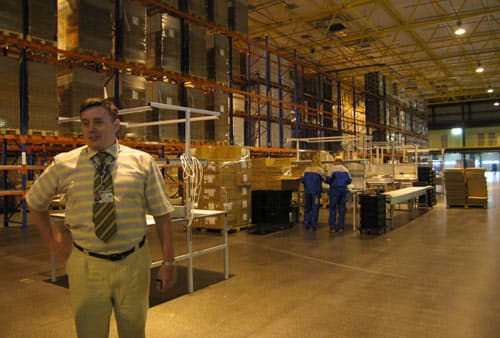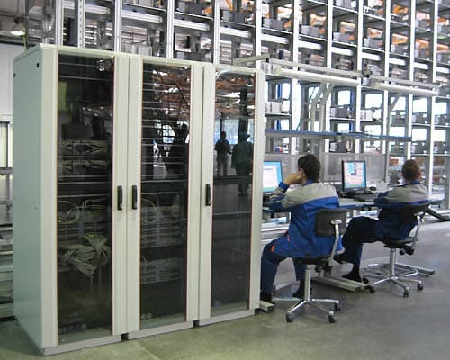 После осмотра производственного цеха министр информационных технологий и связи России Леонид Рейман с сопровождающими отправился к выставке решений Kraftway (к ней мы еще вернемся чуть позже), ну а мы заглянули еще и на склад.