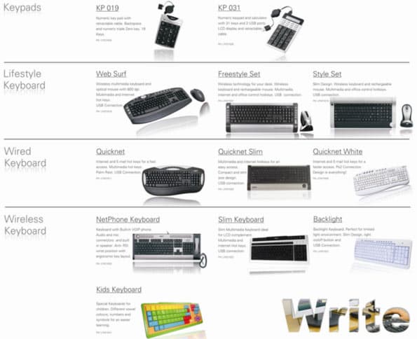 Так, категория «Пиши» включает клавиатуры, мыши и коврики.