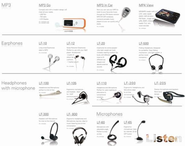 В настоящее время линейка продукции Lifetech насчитывает 150 активных позиций! Однако покупатели вряд ли смогут запутаться в ассортименте — всё достаточно четко и понятно. Как пояснила менеджер по маркетингу Lifetech, Луиза Феррейра (Luisa Ferreira), вся линейка разделена на категории: «Пиши», «Слушай», «Смотри», «Делись», «Носи» и «Играй», — в каждую из которых входит не очень большое количество моделей, которые, тем не менее, могут покрыть все необходимые потребности.